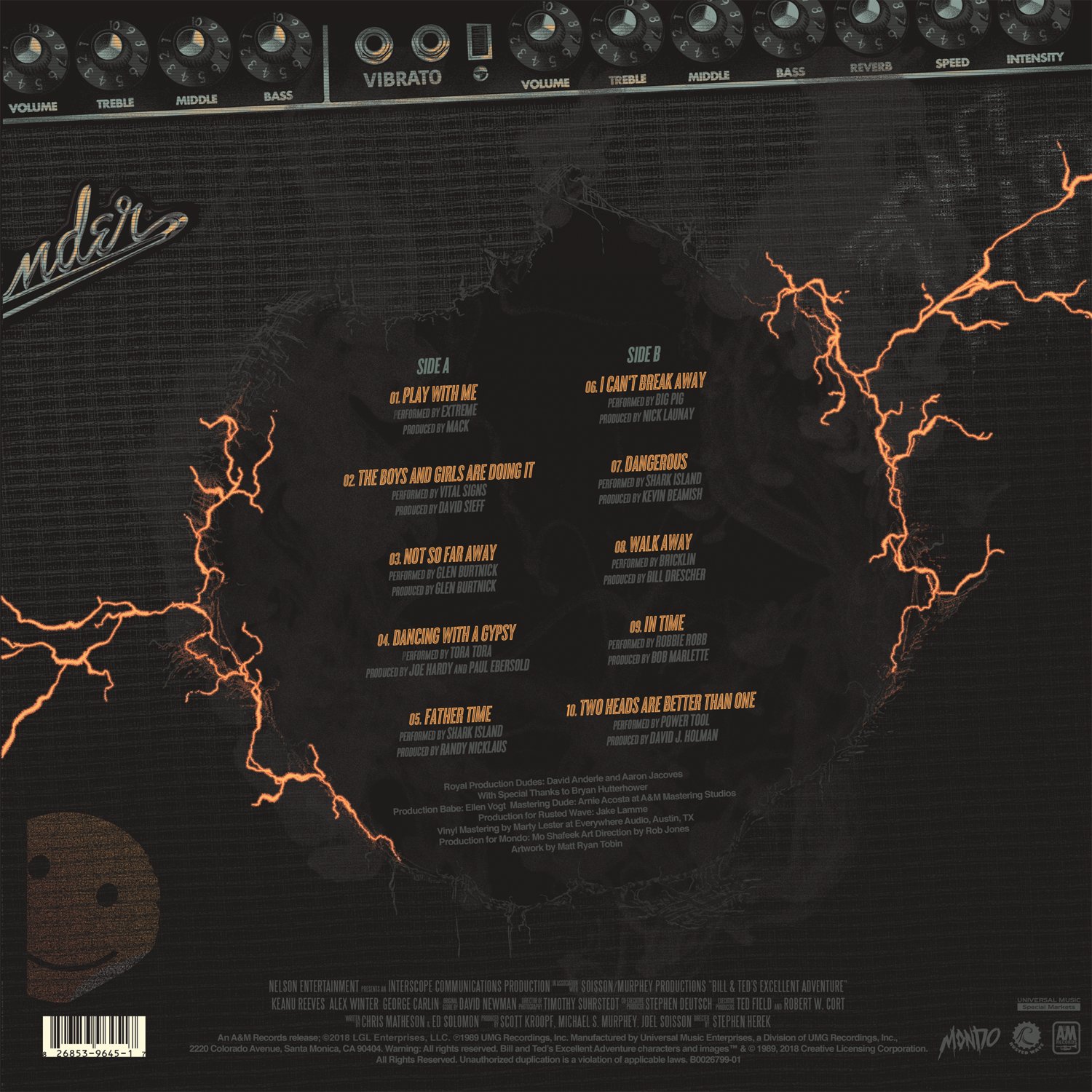 Bill & Ted’s Excellent Adventure (OST), originally released by A&M Records in 1989, is being re-released on vinyl with a limited pressing by Rusted Wave and Mondo! Standard black, first pressing limited to 500 copies.